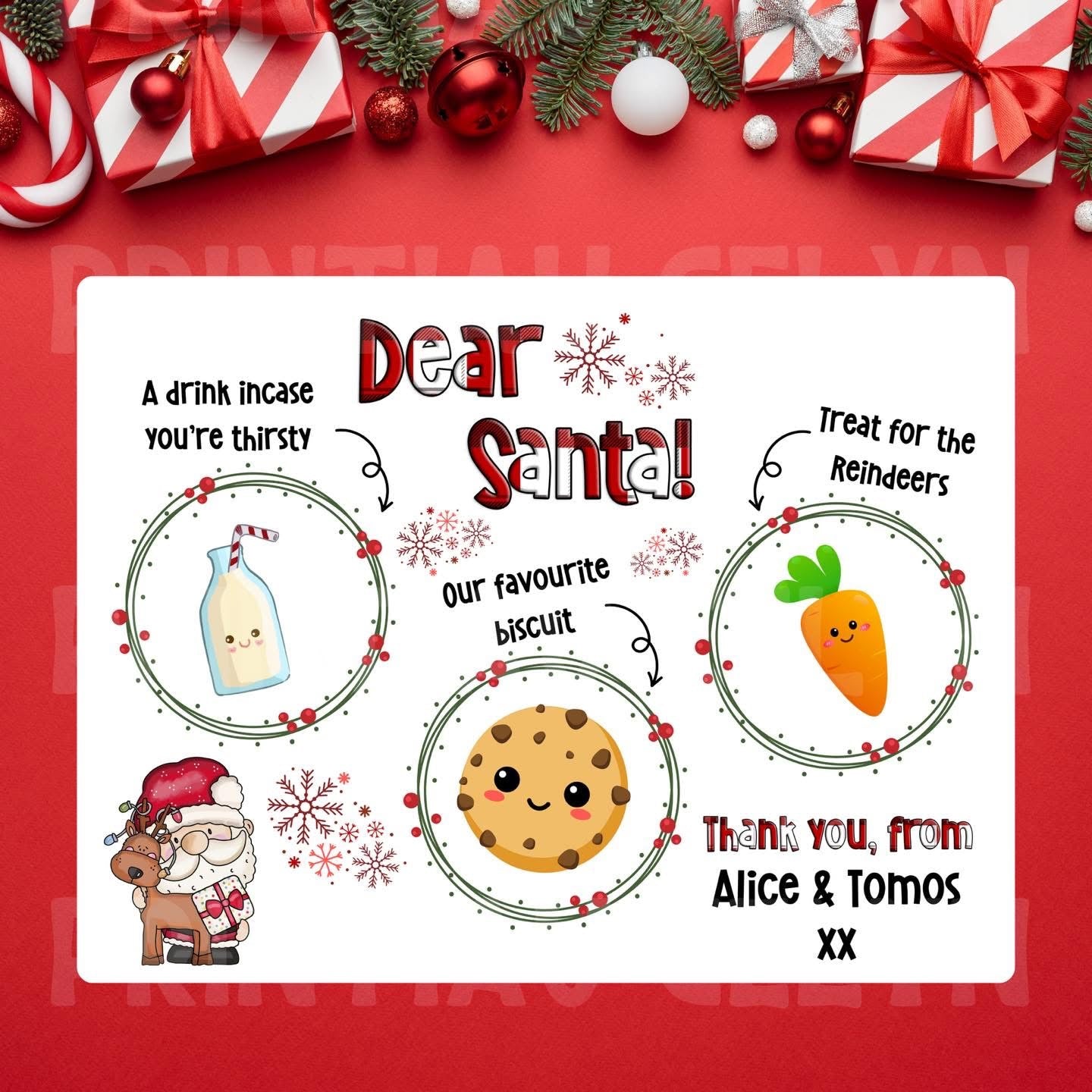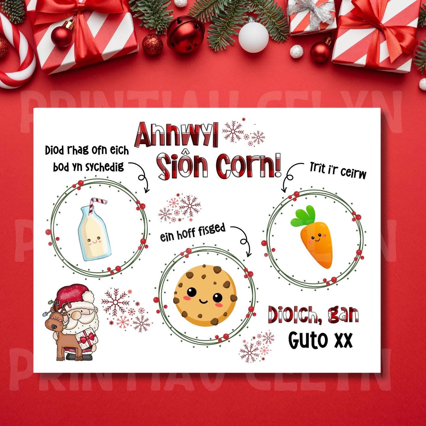 Bwrdd Siôn Corn wedi'i bersonoli gyda enw neu hebddo. Wedi'i wneud allan o MDF a cefyn corc.