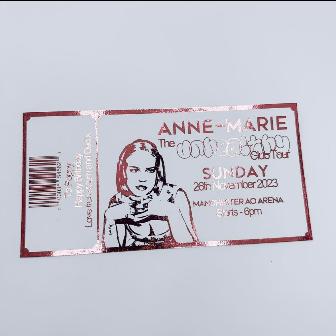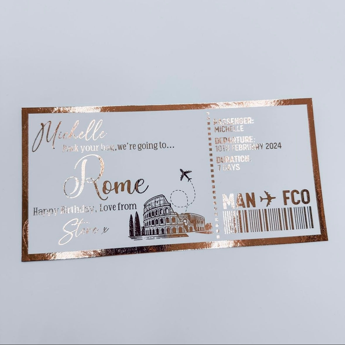 Make your non-wrappable gift stand out with foiled gift ticket! Have you booked a holiday, birthday meal, concert or a surprise? These foiled tickets would be perfect!